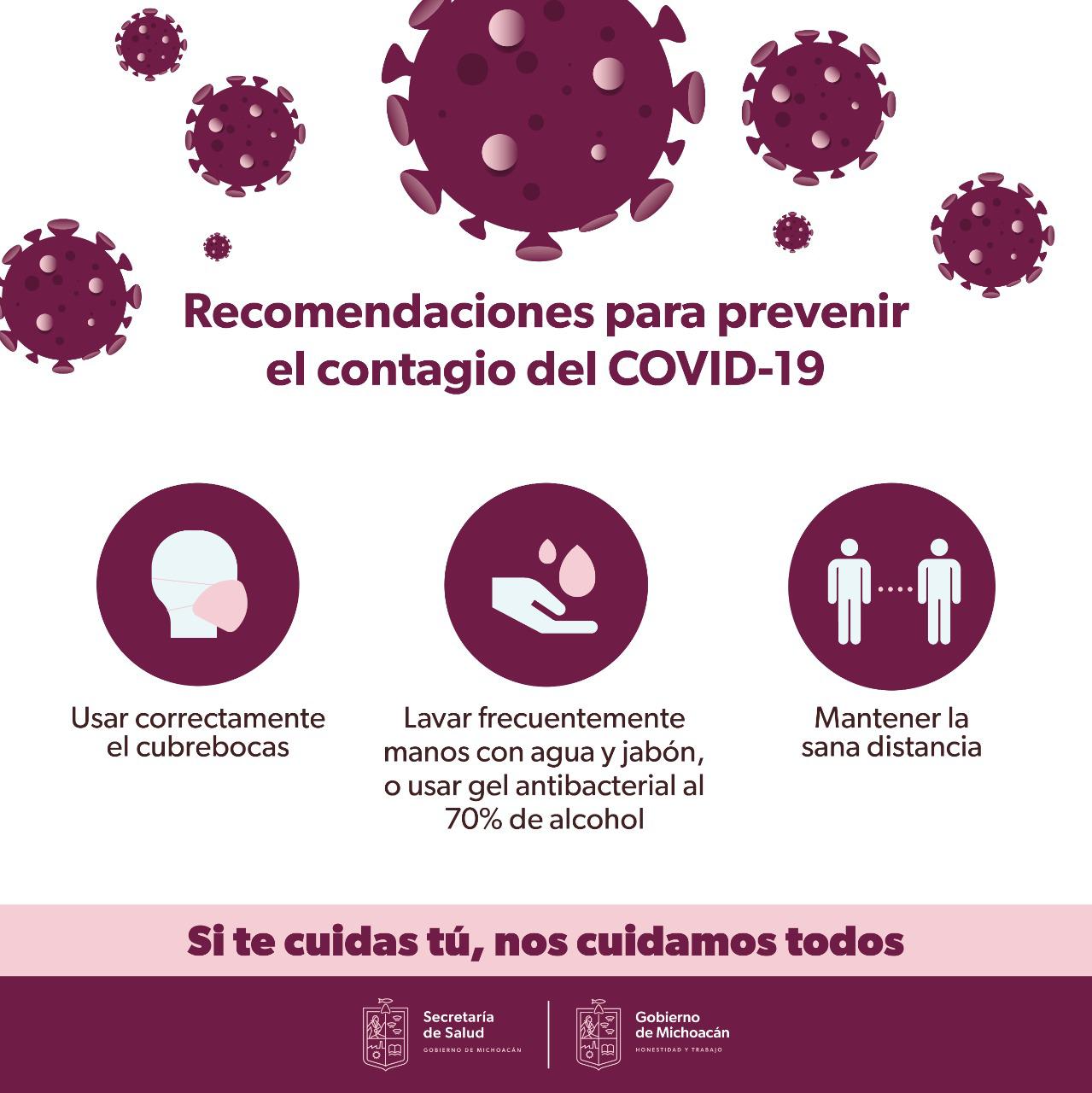Se mantendrá el exhorto a la población en general, a no descuidar ni bajar la guardia con las medidas sanitarias básicas como lo es el lavado de manos, el uso de cubrebocas en lugares públicos cerrados, evitar aglomeraciones, desinfección con gel antibacterial, respetar la sana distancia y evitar saludar de manos, beso y abrazo.