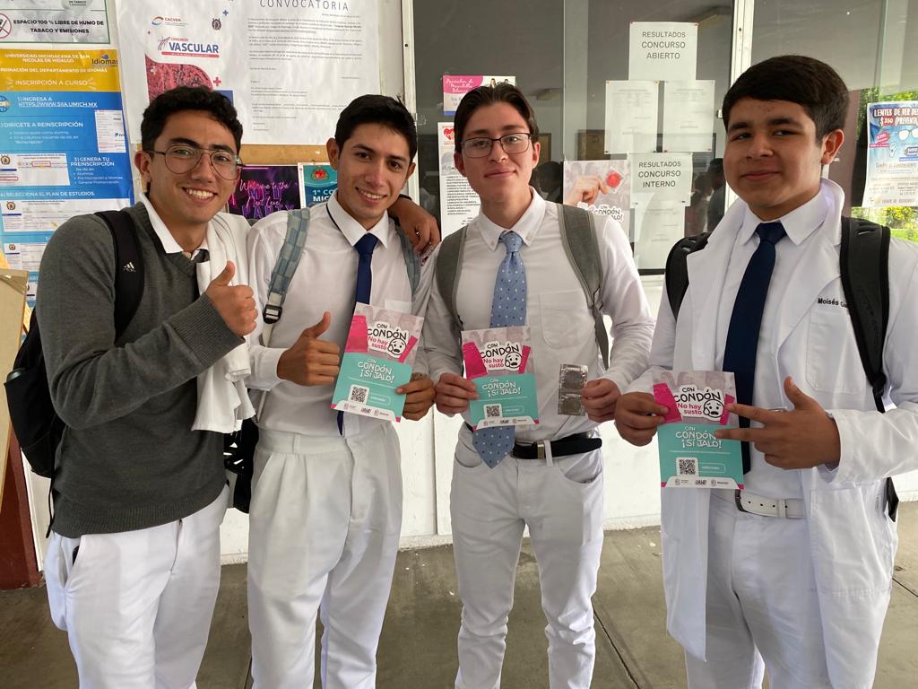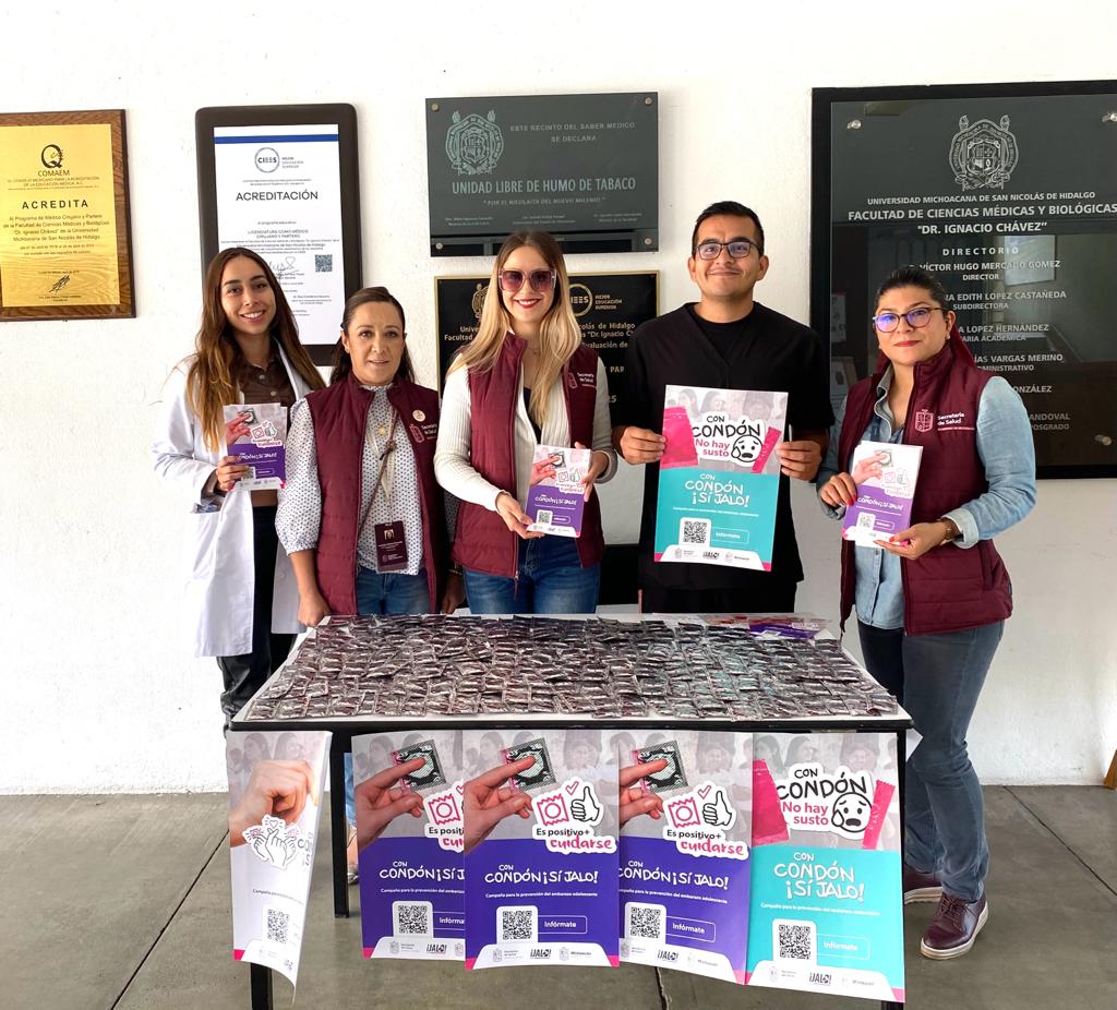 Es así, que en la Facultad de Medicina de la Universidad Michoacana de San Nicolás de Hidalgo, en compañía del director, Víctor Hugo Mercado Gómez, se repartieron 400 condones masculinos a estudiantes de esa institución de nivel medio superior y superior.