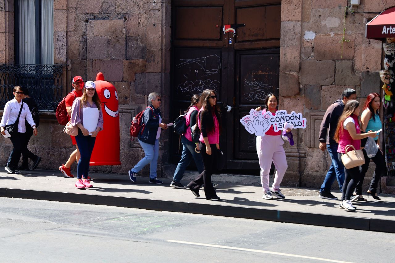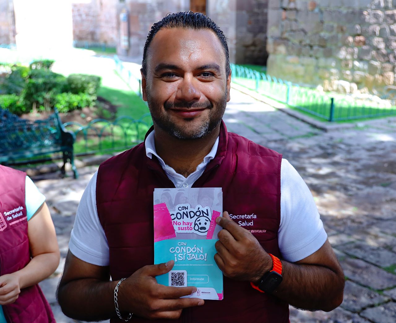 Morelia, Michoacán, 16 de agosto de 2023.- La Secretaría de Salud de Michoacán (SSM) y el Instituto de la Juventud Michoacana (Ijumich), refuerzan acciones de concientización sobre el uso del preservativo con la campaña Con Condón Sí Jalo.