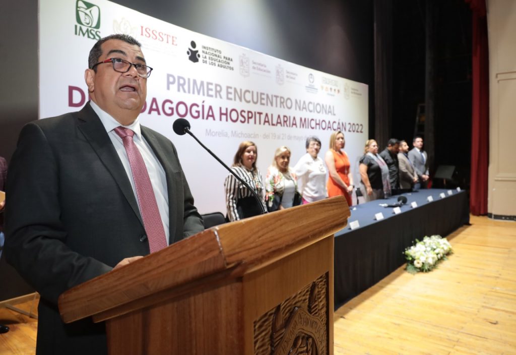 Se trata de 150 menores con cáncer, problemas cardiacos y nefrológicos, los que reciben atención escolarizada en el interior del Hospital Infantil, además de tratamiento médico con especialistas, con lo que se garantiza que el niño egrese curado y sin rezago escolar, señaló el secretario de Salud de Michoacán, Elías Ibarra Torres, durante la inauguración del Primer Encuentro Nacional de Pedagogía Hospitalaria en Michoacán.
