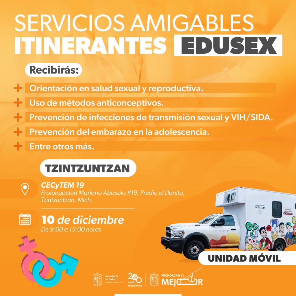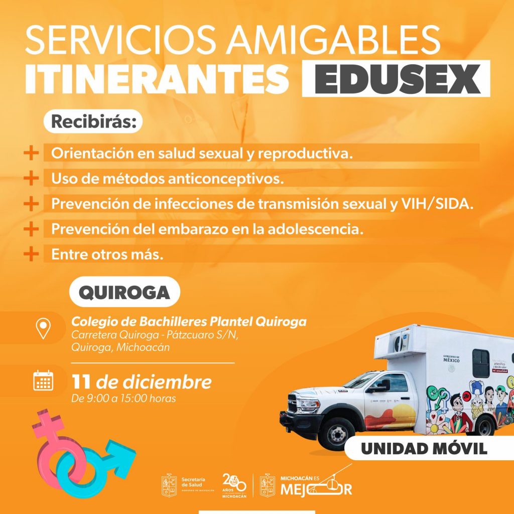 Además de disipar dudas, el personal de salud explicará el uso de métodos anticonceptivos de corto y largo plazo, como el condón, implante subdérmico y inyecciones anticonceptivas, todo en total confidencialidad, alumno por alumno de manera privada, en aras de que las y los adolescentes comprendan cómo ejercer una sexualidad responsable y conozcan los servicios amigables, ubicados en centros de salud de todo el estado y que se pueden encontrar en la página https://salud.michoacan.gob.mx/servicios-amigables/.
