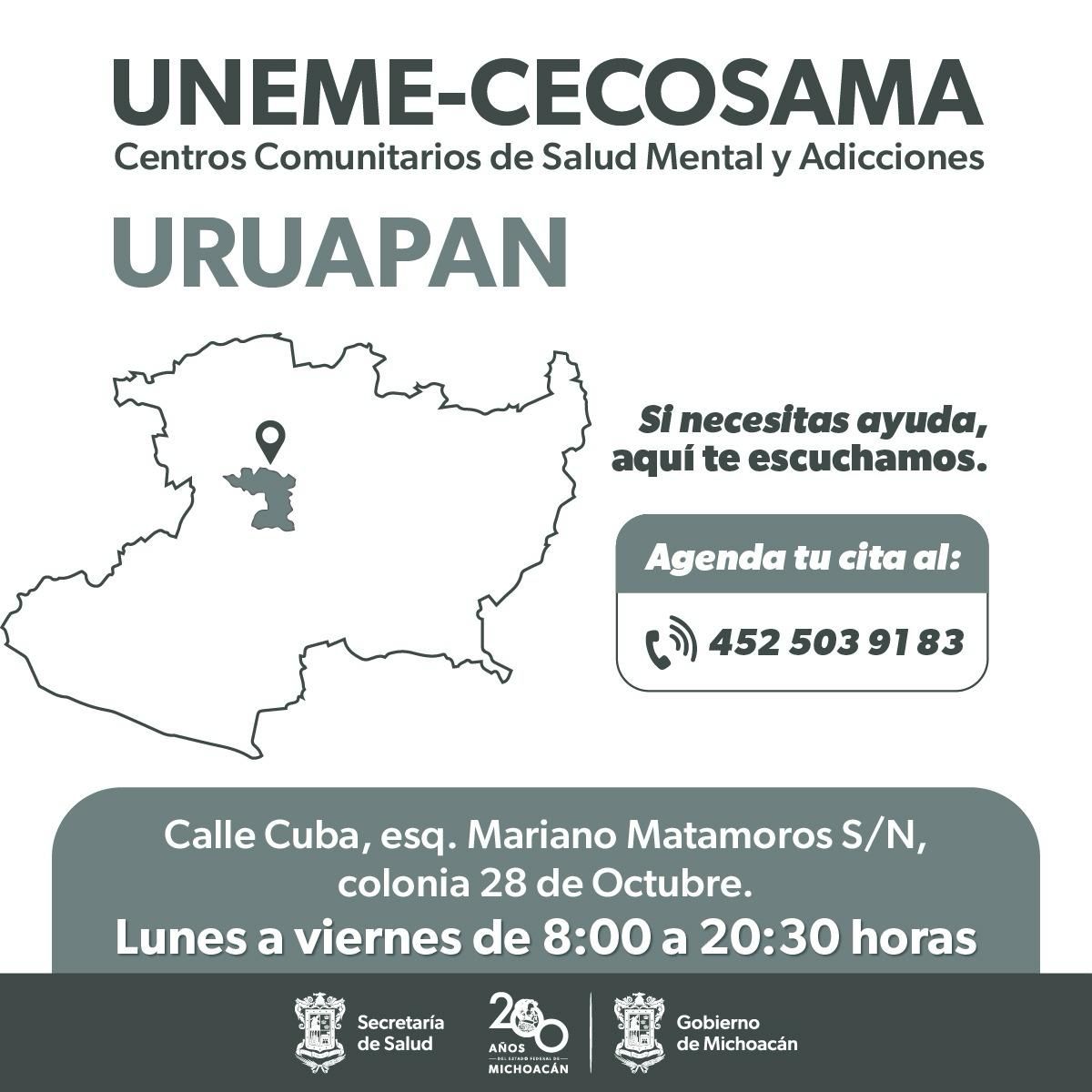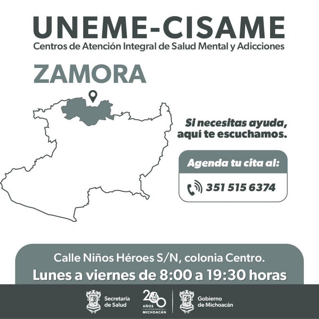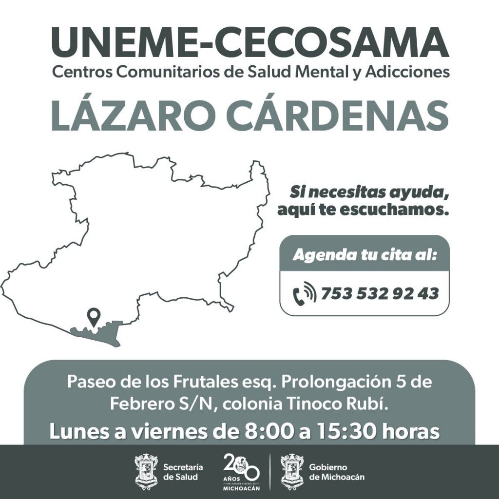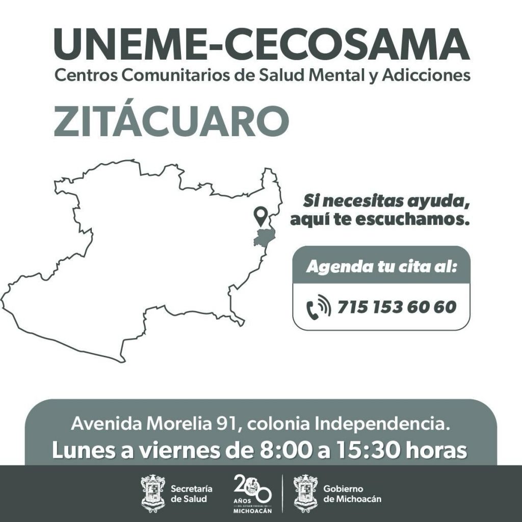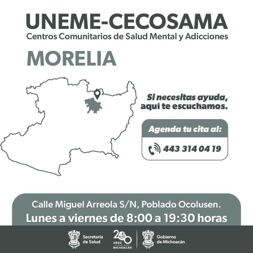 • En los Centros Comunitarios de Salud Mental y Adicciones de Morelia, Uruapan, Zitácuaro, Zamora y Lázaro Cárdenas