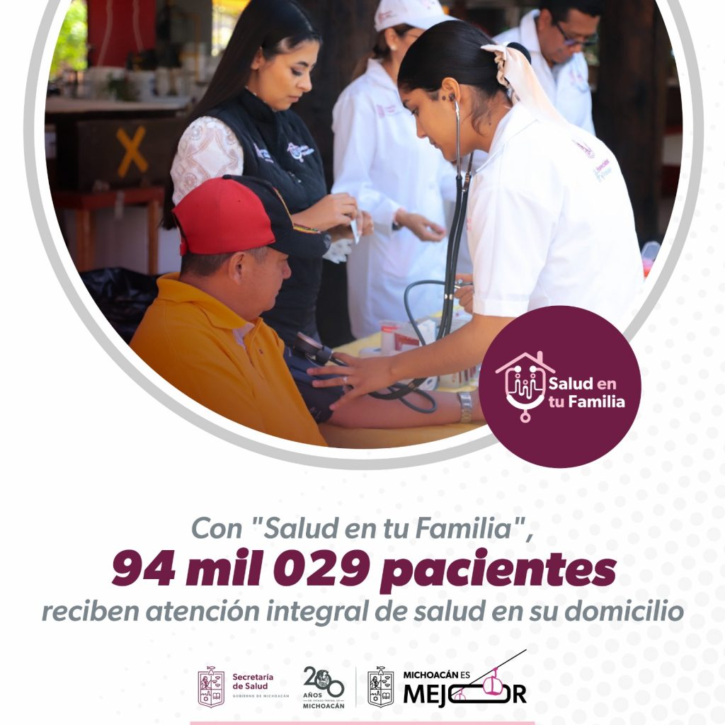 Morelia, Michoacán, 7 de diciembre de 2024.– Michoacanos en condición de vulnerabilidad han mejorado su calidad de vida de manera considerable, a través del Programa Salud en tu Familia, donde se les brinda atención médica integral, gratuita y oportuna en su propio hogar.