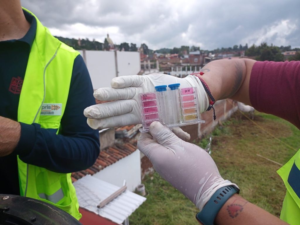 Asimismo, se verificaron las fuentes de abastecimiento de agua en la zona afectada, con el fin de detectar posibles contaminaciones derivadas del escurrimiento y acumulación de aguas pluviales. Esta acción es fundamental para prevenir brotes de enfermedades de origen hídrico, como infecciones gastrointestinales, hepatitis A o enfermedades dermatológicas.