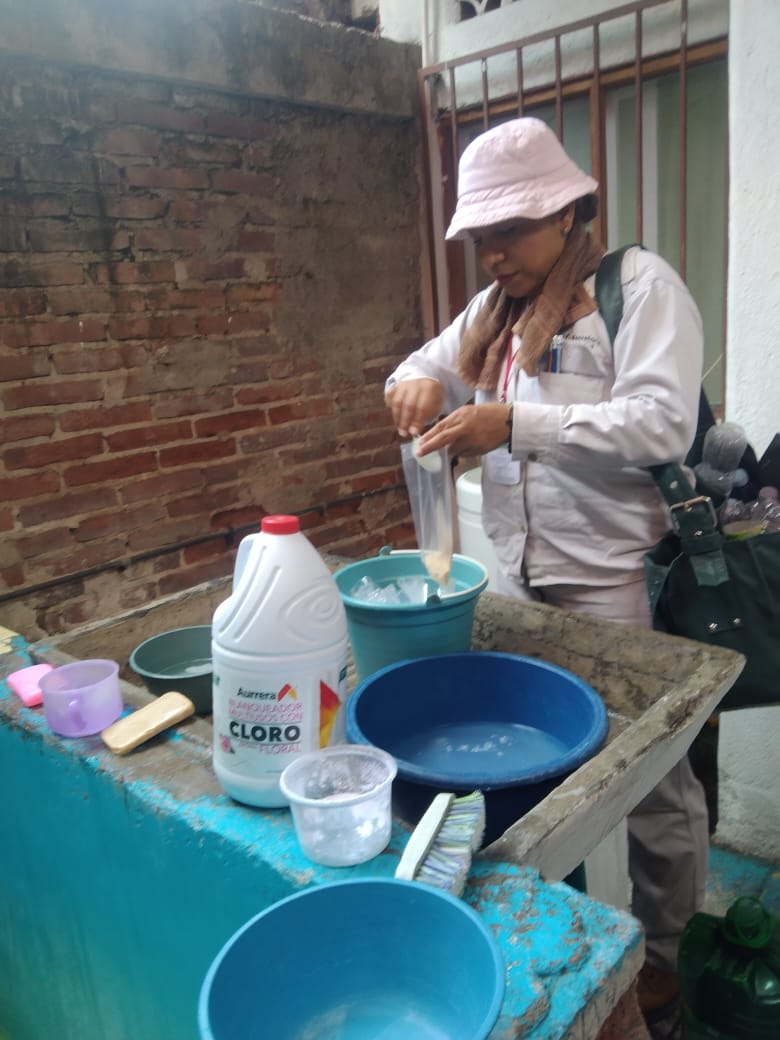 Aunado al trabajo conjunto con la sociedad civil de patios limpios a través de la estrategia lava, tapa, voltea y tira botes, botellas, cubetas, llantas, pilas, piletas y aquello que acumule agua.