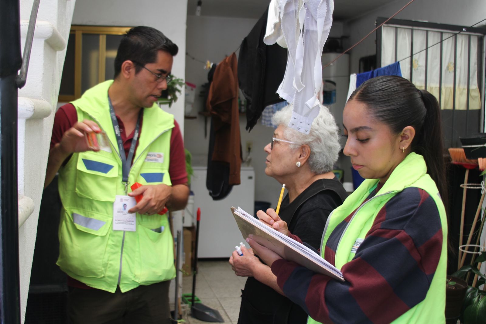 Durante el recorrido, brigadistas de la Comisión Estatal para la Protección contra Riesgos Sanitarios (Coepris) realizaron la evaluación de las condiciones sanitarias en 83 viviendas, que resultaron con inundaciones y afectaciones de consideración.
