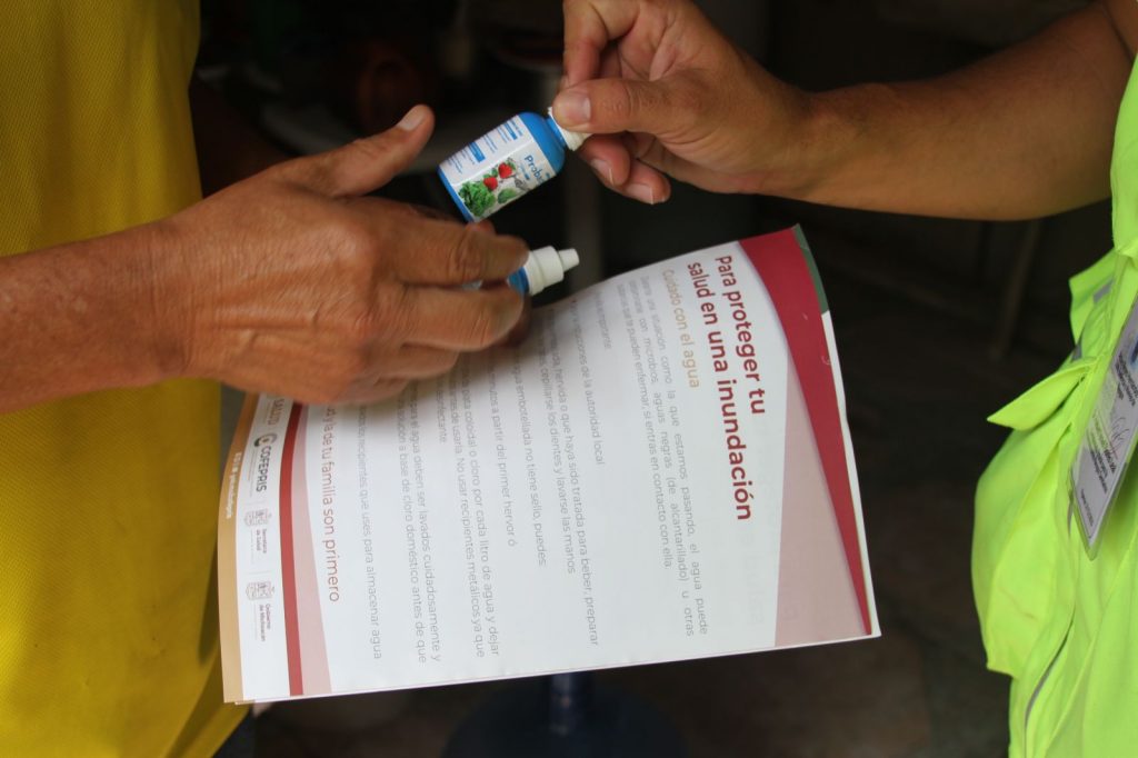 Como parte de las acciones para proteger la salud de la población, fueron clorados 298 mil litros de agua potable de los tinacos, para garantizar que el agua no esté contaminada de descargas residuales y pluviales.
