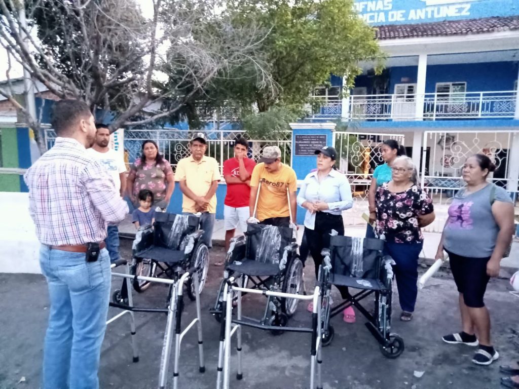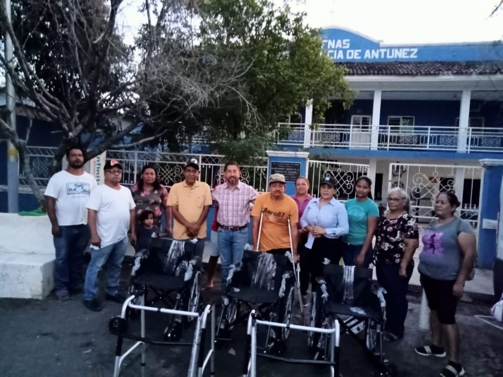 Parácuaro, Michoacán, 26 de octubre de 2023.- El Gobierno de Michoacán, a través de la Secretaría de Salud de Michoacán (SSM) entregó en la localidad de Antúnez, del municipio de Parácuaro, sillas de ruedas, anderas y bastones a pacientes vulnerables, todos beneficiarios de servicios médicos del programa sello Salud en tu Familia.
