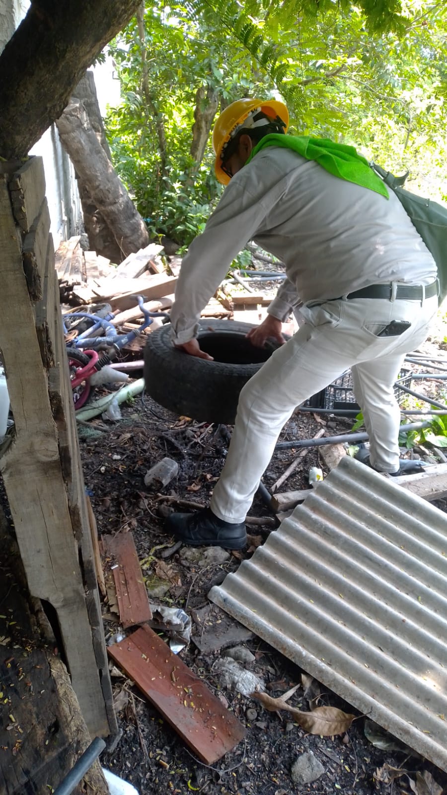 Para que estas acciones sean más efectivas, personal capacitó a estudiantes y población general en la estrategia lava, tapa, voltea y tira recipientes que puedan acumular agua; además de repartir material impreso para reconocer los síntomas del dengue como fiebre, náuseas y dolor de articulaciones, para que acudan a recibir atención médica oportuna.