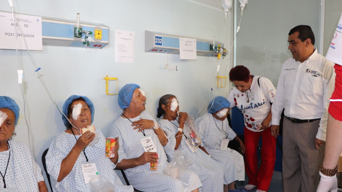 Elías Ibarra Torres, titular de los servicios de salud en la entidad, visitó este viernes dicho nosocomio para saludar a los pacientes a los que les colocaron lentes intraoculares; agradeció al personal médico, de enfermería y a todos los involucrados por este gran esfuerzo conjunto, que sin duda representa una gran seguridad para los beneficiados.