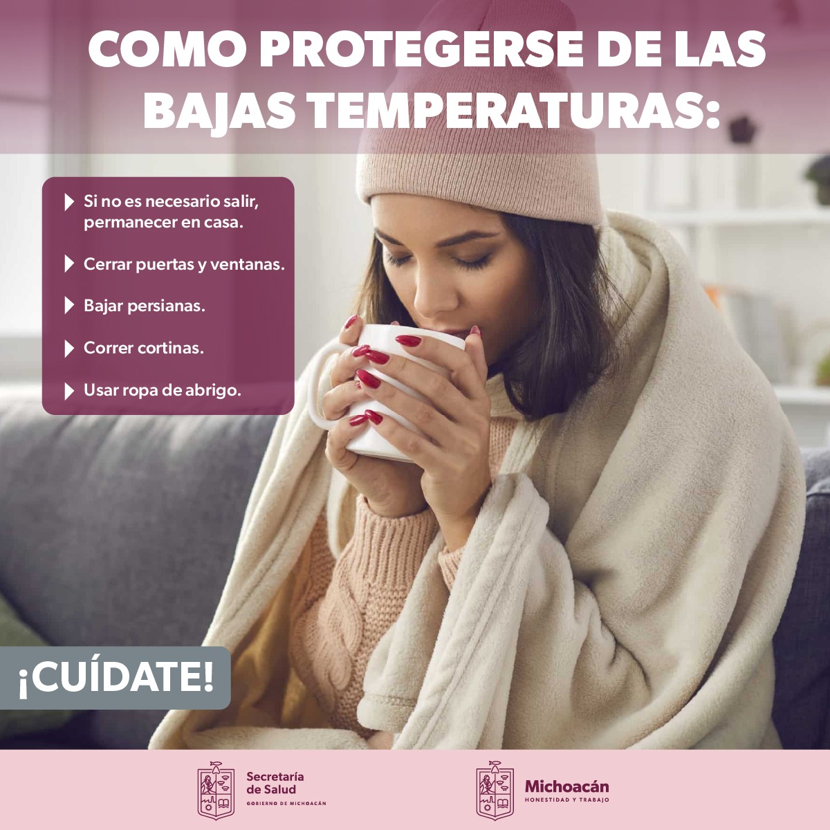 De acuerdo al reporte Meteorológico Nacional, canales de baja presión, en combinación con la entrada de humedad procedente del Océano Pacífico, propiciarán lluvias fuertes en todo el estado, situación por la que la SSM, recomienda a las y los michoacanos, mantenerse bien abrigados y evitar cambios bruscos de temperatura que puedan poner en riesgo su salud.