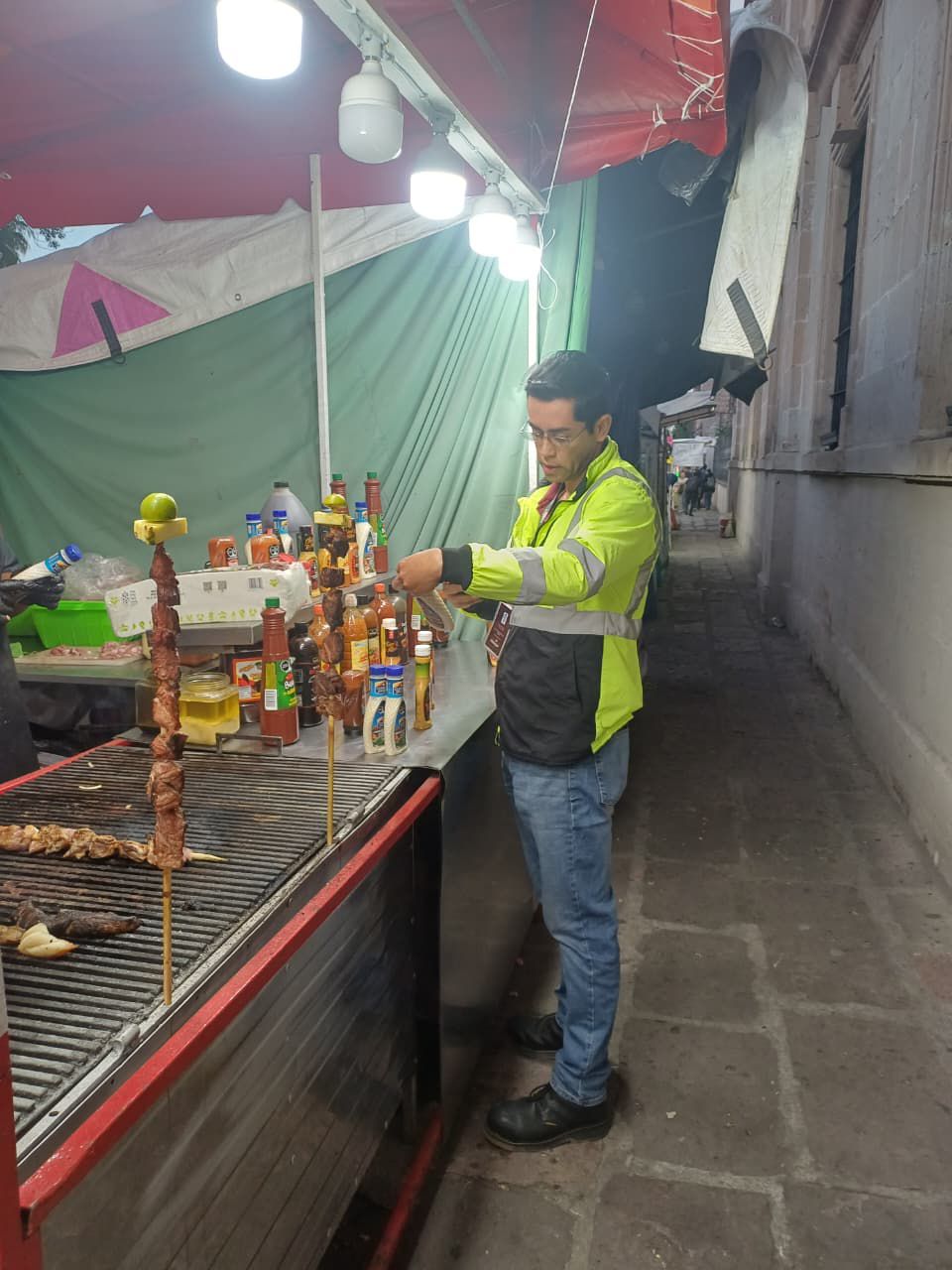 Morelia, Michoacán, 26 de noviembre de 2025.- Con el propósito de proteger la salud de las y los michoacanos durante las próximas celebraciones guadalupanas, la Secretaría de Salud de Michoacán (SSM), a través de la Comisión Estatal para la Protección contra Riesgos Sanitarios (Coepris) llevó a cabo un operativo sanitario en la Calzada Fray Antonio de San Miguel y zonas aledañas, donde se supervisaron más de 60 puestos de comida semifijos instalados con motivo de estas festividades.