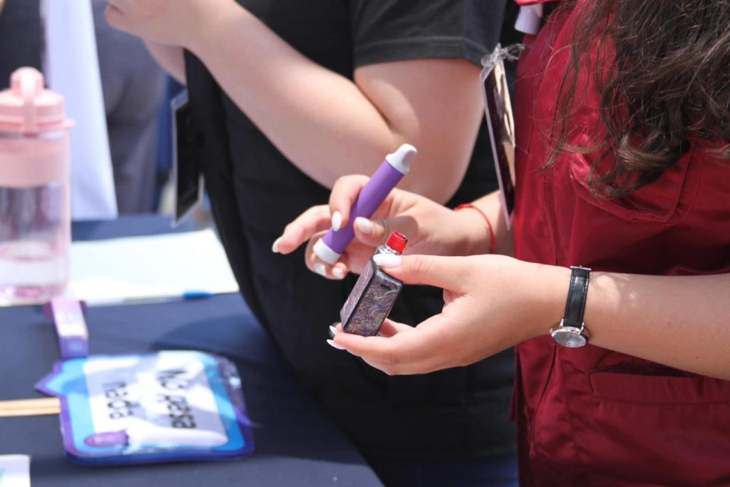 Alertó a estudiantes sobre los daños a la salud que ocasiona el consumo de tabaco y el uso de cigarrillos electrónicos.