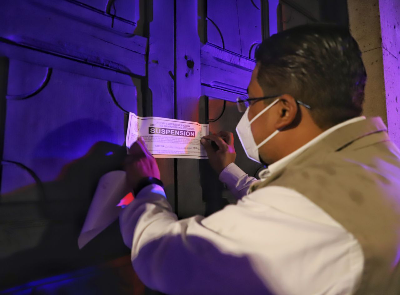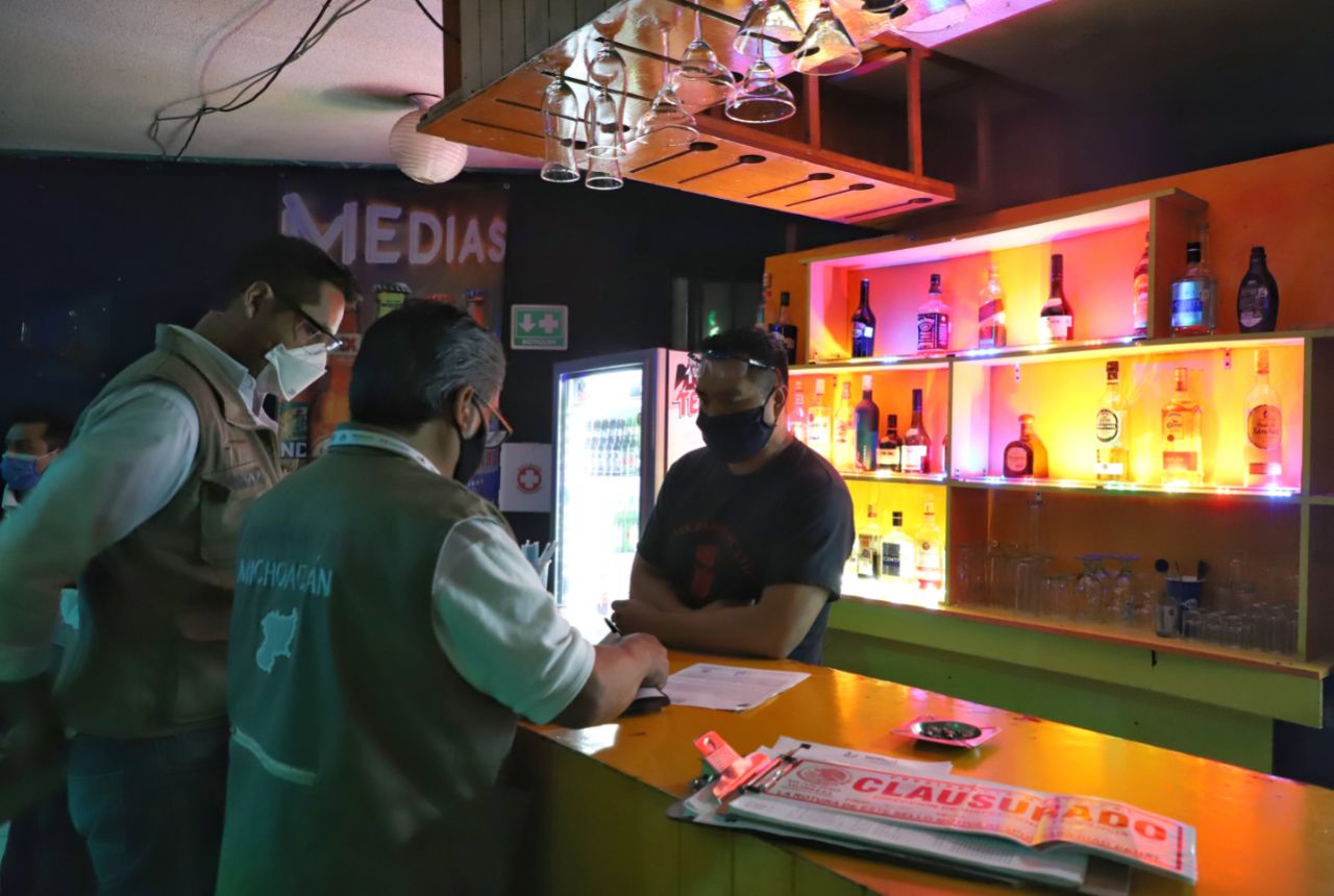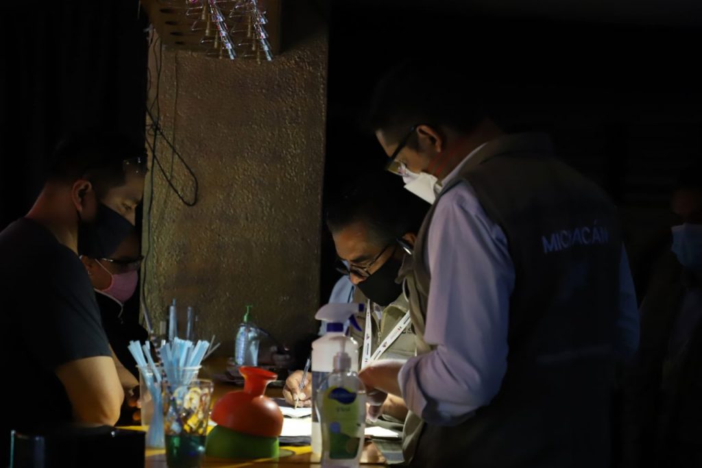Morelia, Michoacán, a 25 de julio de 2020.- Durante un operativo en bares y centros nocturnos de Morelia, la Secretaría de Salud de Michoacán (SSM), suspendió cinco establecimientos por no cumplir con las medidas establecidas por el Gobierno del Estado para la Nueva Convivencia.